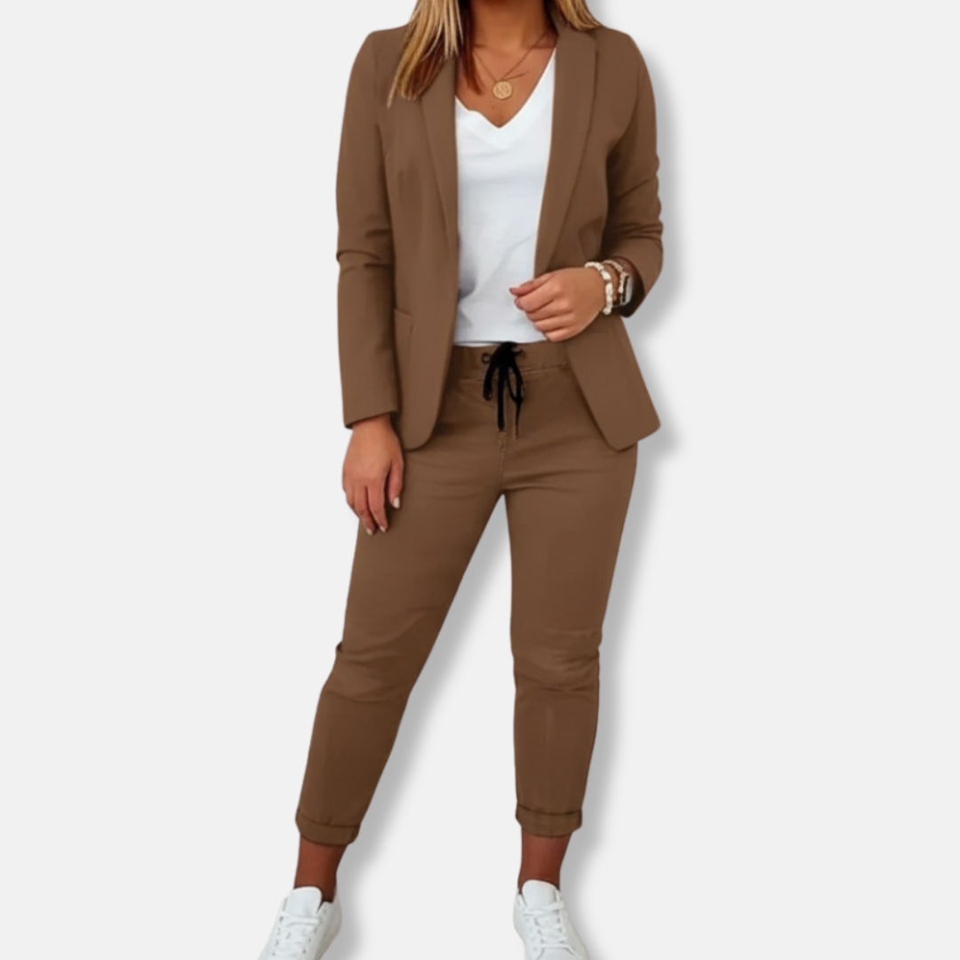 Viola Regular Fit Two-Piece Set | Lapel Collar Blazer & Jogger Pants Set