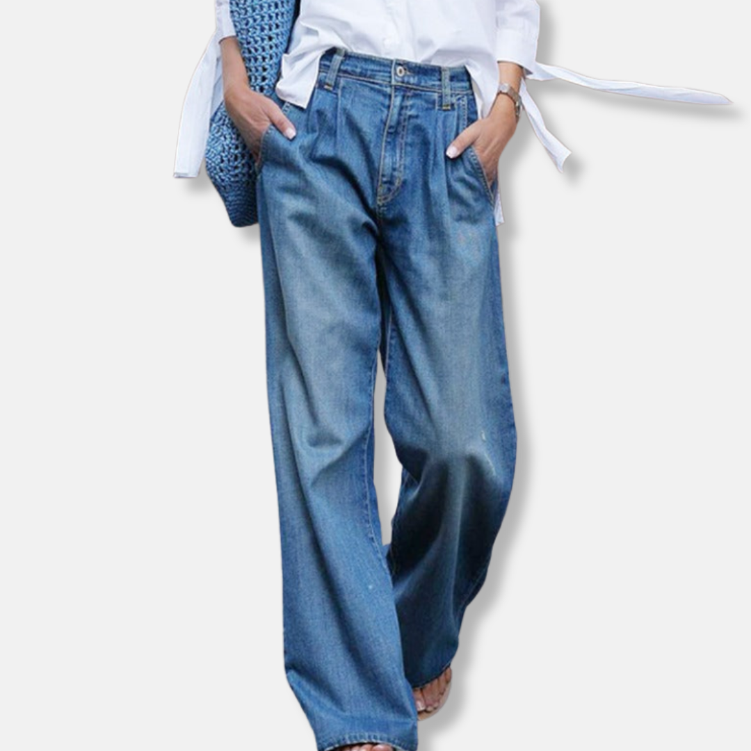 Olivia Relaxed Fit Jeans | Pleated Button Front Pockets Jeans